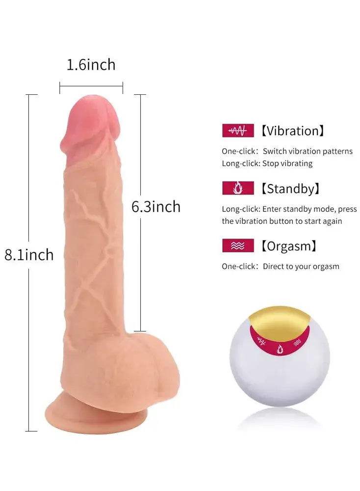 This realistic dildo vibrator total length 8.1 inch, insertable 6.3 inch, width diameter 1.6 inch, perfect size for women masturbation, g-spot stimulation and anal play. The lifelike glans, vividly vein textures and firm shaft make it feeling like the real thing.